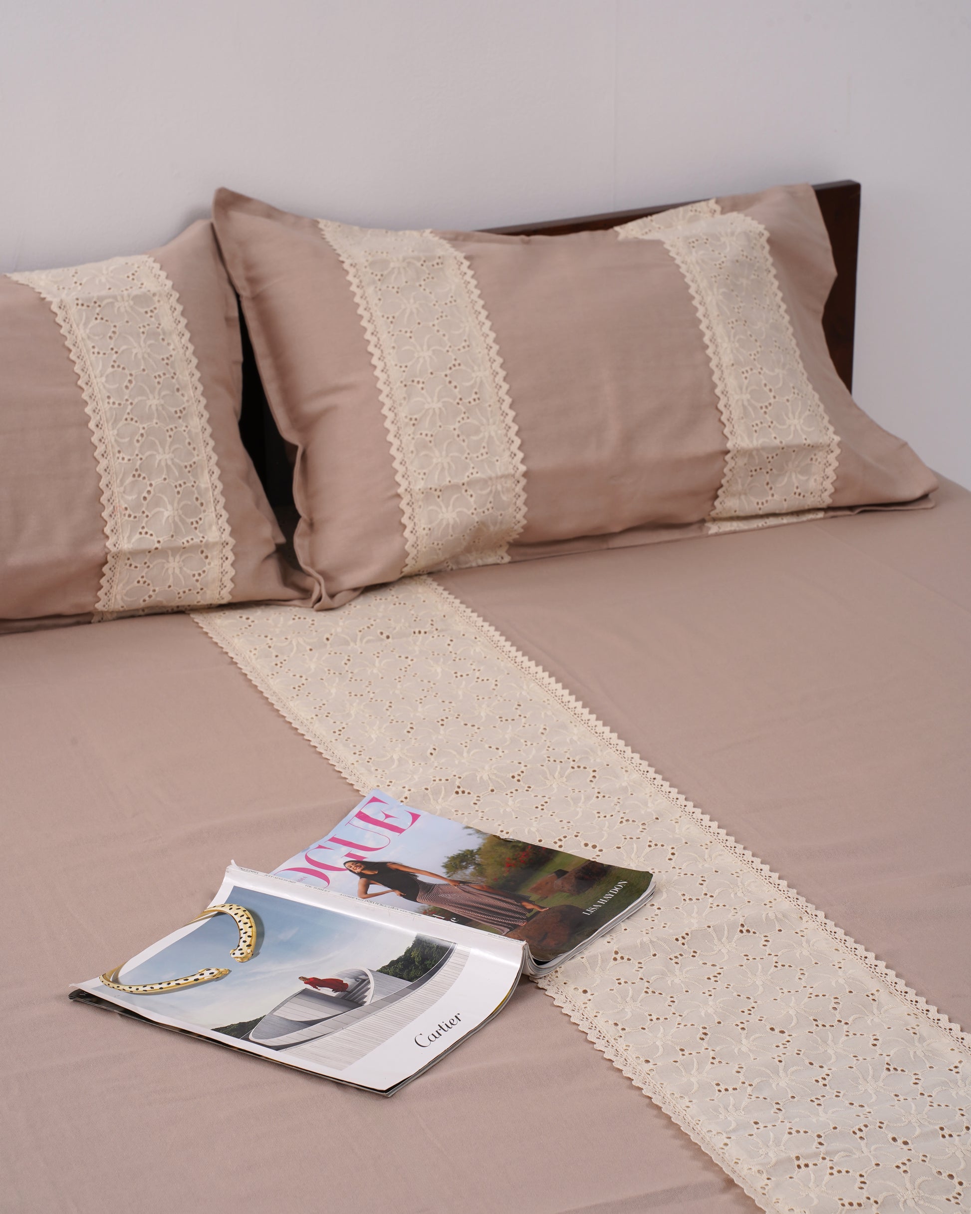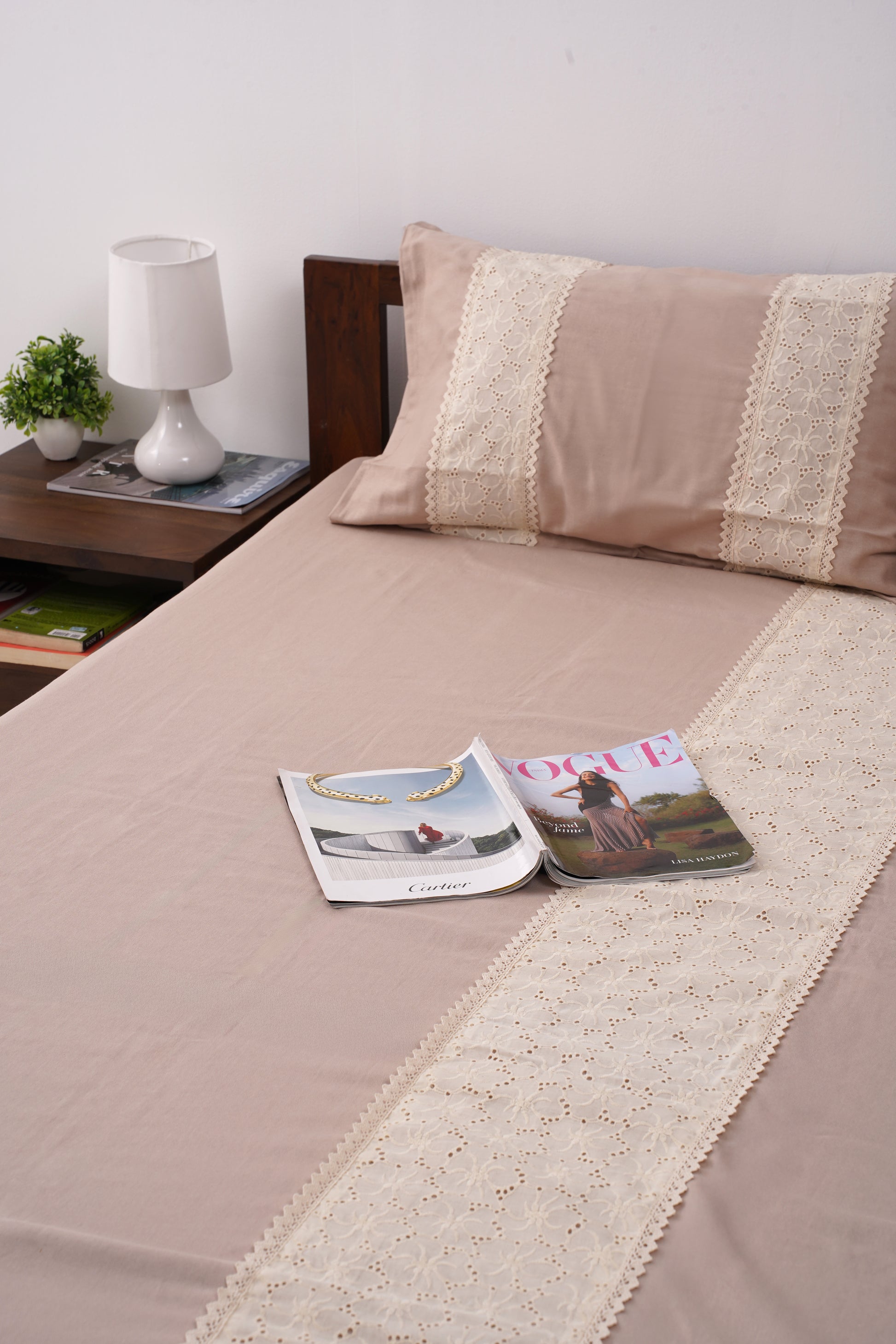 - Its warm beige shade is like a sun-kissed sandy beach, bringing a soothing, peaceful energy to your space. The delicate lace trim adds just the right touch of vintage romance — a soft, graceful detail that feels like a little love letter tucked into your bedtime routine.